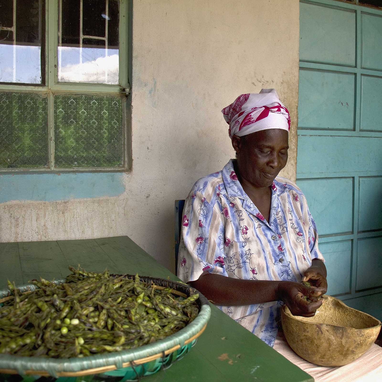 Το φυτό κόβεται στο έδαφος, όταν η πλειονότητα των λοβών έχει φθάσει σε στάδιο ωρίμανσης. Τα φυτά ξηραίνονται στον αέρα και στη συνέχεια κοπανισμένο να αφαιρέσετε τους σπόρους.