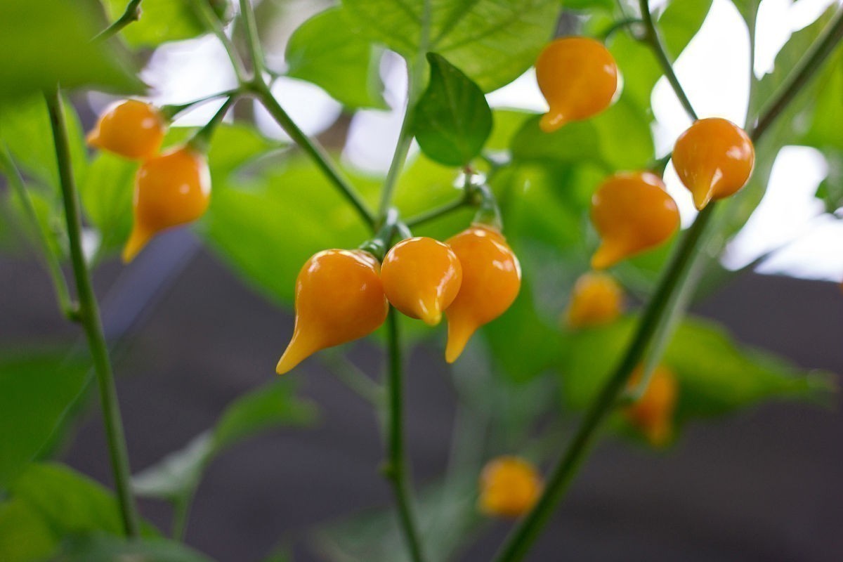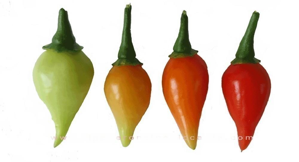 Sementes de Pimenta, da variedade Iracema Biquinho, espécie Capsicum chinense, um pimenteira de frutos doces utilizados em diversos pratos culinários e conservas. As pimentas biquinho apresentam caule ramificado, ereto e folhas lanceoladas, verdes e brilhantes, com nervuras bem marcadas. As flores são brancas a arroxeadas. O fruto é do tipo baga, de forma esférica a piriforme, com uma ponta afilada característica desta variedade.